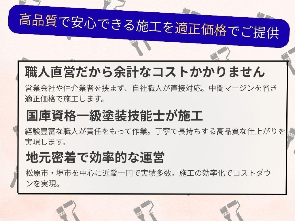 松原・堺を中心に、近畿一円で外壁や屋根の塗装工事を手がけています。